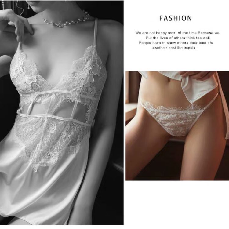 Hình ảnh chi tiết Váy ngủ satin phối ren khoét ngực hở lưng sexy gợi cảm 3 màu