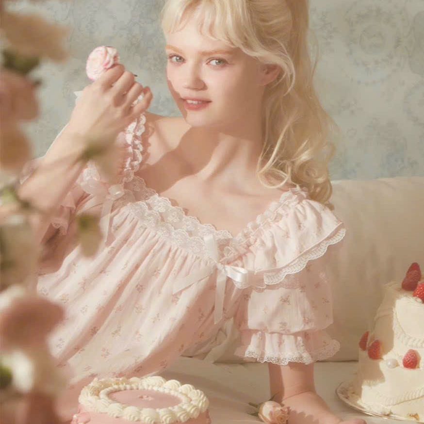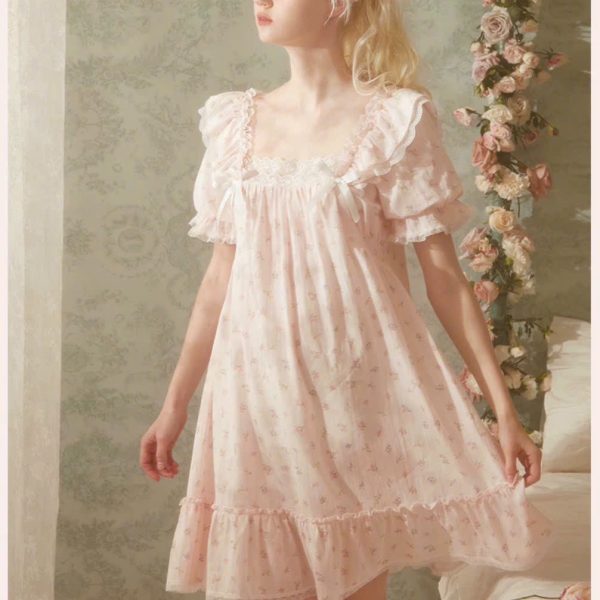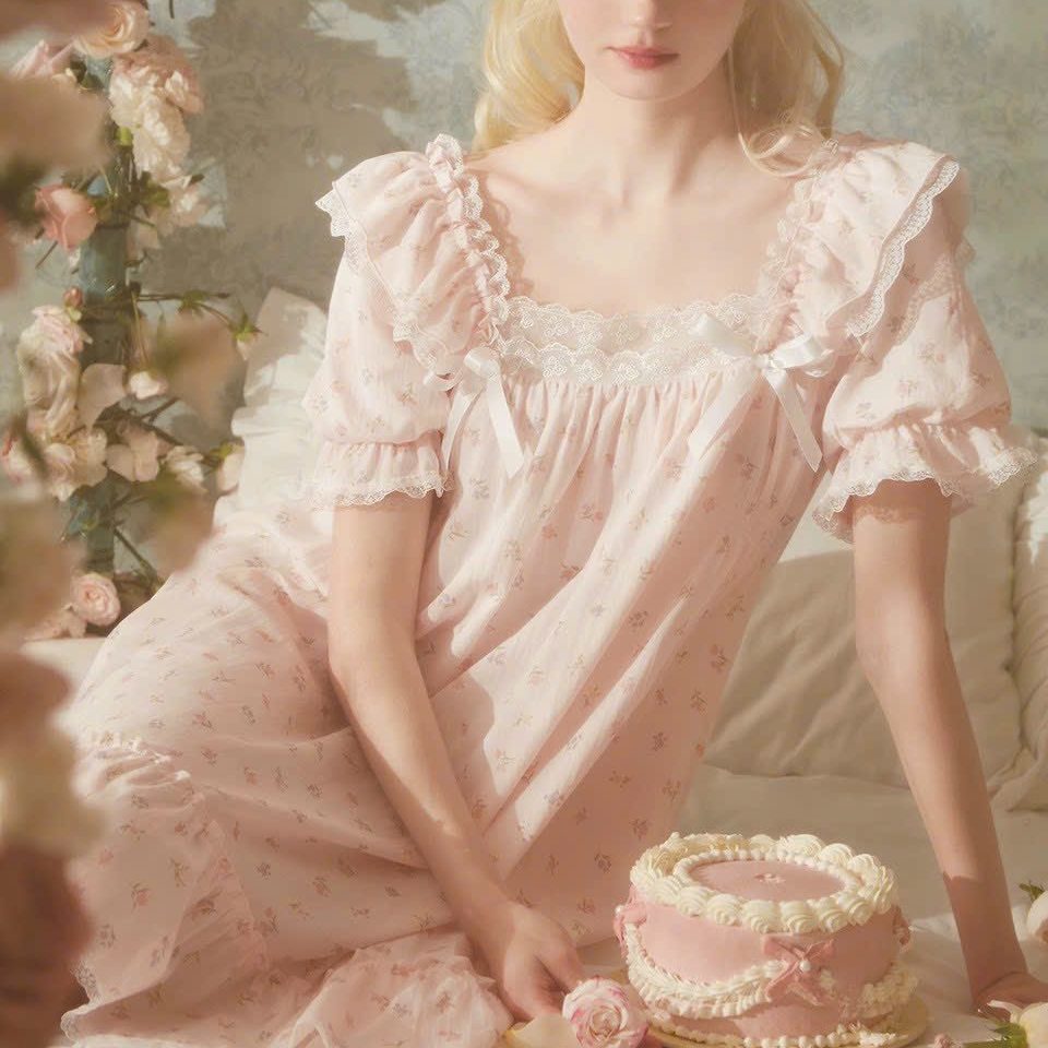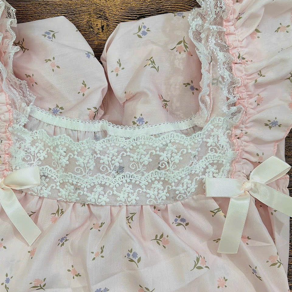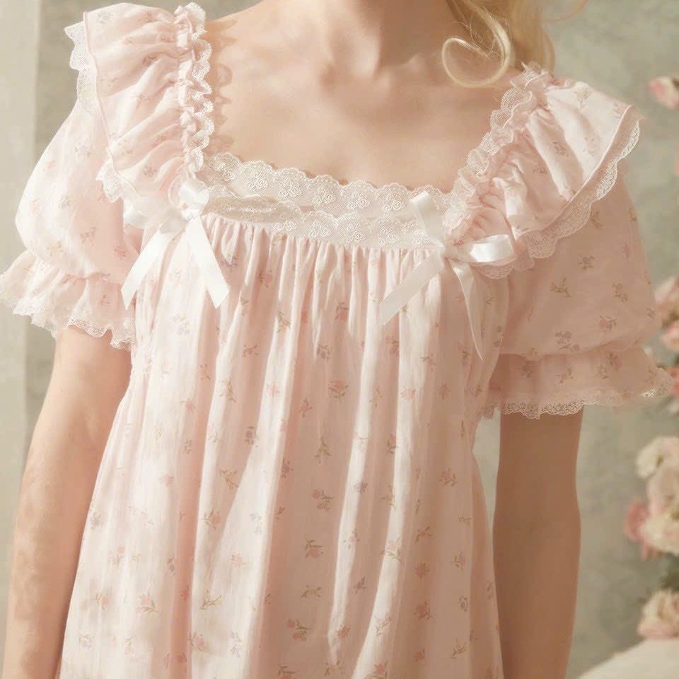 Váy ngủ chất liệu voan kiểu dáng nhẹ nhàng hoạ tiết đáng yêu đem lại cho bạn gái vẻ ngây thơ quyến rũ.